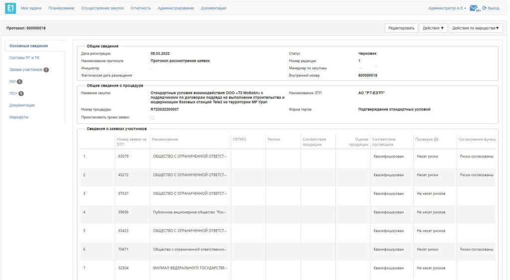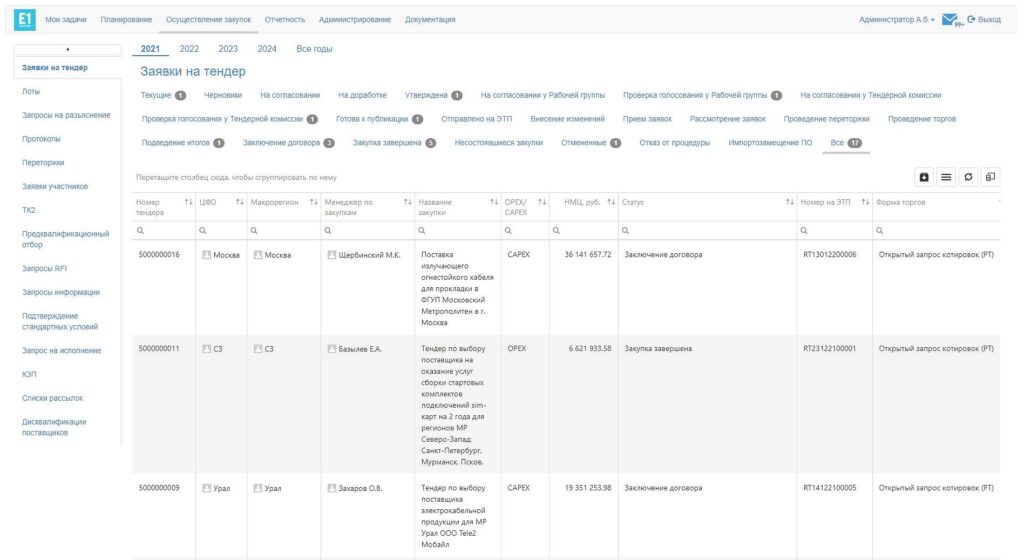 Сейчас в компании Теле2 на базе продукта «Е1-закупки» реализован весь закупочный процесс