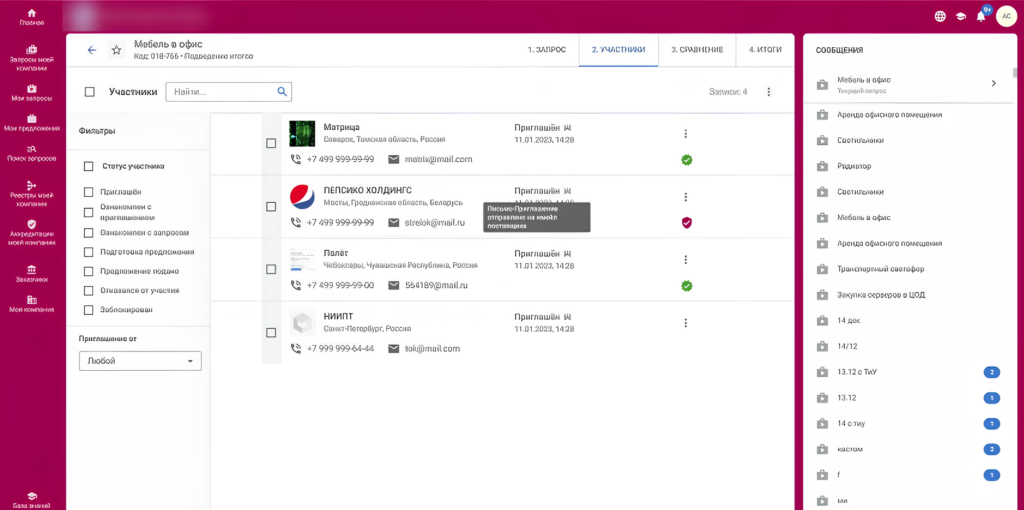 Использование ЭТП Bidzaar позволило привлечь большое количество заинтересованных поставщиков благодаря бесплатной регистрации и минимальной комиссии при победе в конкурсе. Это создало высокую конкуренцию среди поставщиков, способствующую улучшению качества обслуживания и снижению цен.